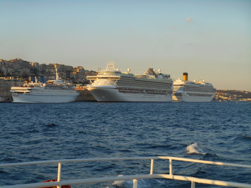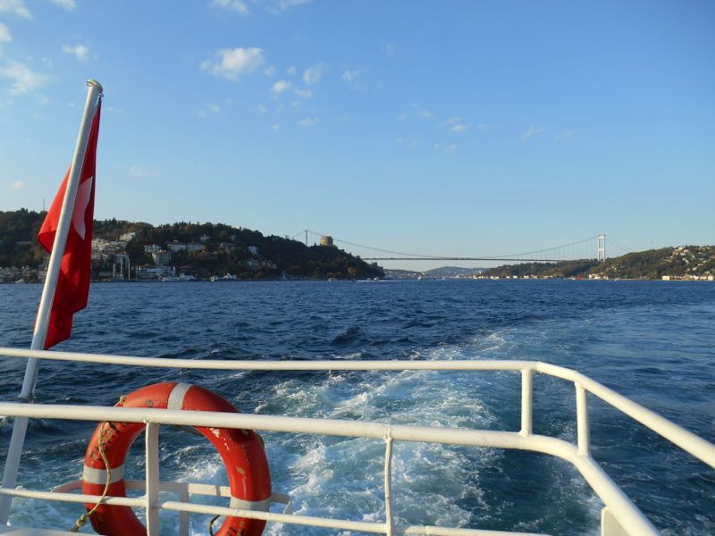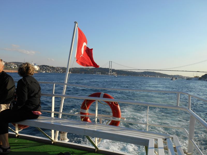 After a quick walk across the city, we boarded a boat for a late afternoon cruise on the Bosphorus. The weather was beautiful, and it was a great way to relax and begin to get to know the other tour members. (You can see the bridge connecting Europe and Asia in the background.) What I learned:The Bosphorus is a body of water which separates Europe and Asia. It connects the Black Sea with the Aegean, and thus to the Mediterranean. Istanbul spans the Bosphorus, with part of the city in Europe and part in Asia. (We did not explore the Asian side, but after leaving Istanbul, the remainder of our tour was in Asia.)
