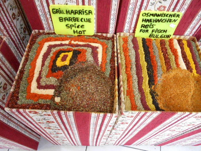 The picture on the right is actually from a spice store in Antalya. I love the way they display the spice mix. My guess is that they stir it up each night and recreate the design with fresh spices, but I don't know for sure. I didn't ask.