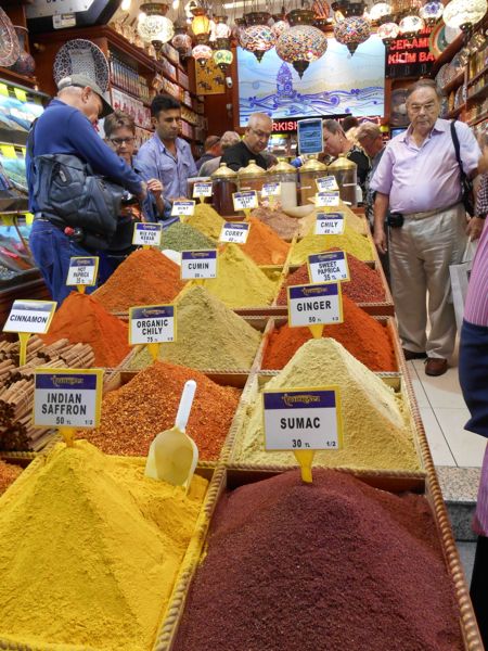 I'm not much of a cook, so I didn't explore the spice market on my walking tour on my first day in Istanbul. After I got back to my hotel that night, there was a message from a friend who wanted me to buy "$20 worth of real saffron" for her. That gave me a goal when we visited again as a group. I asked for $20 worth and what I got was enough to half fill a small jar (the size of a small pill bottle), loosely packed. No wonder it's so expensive back home. I wrapped it carefully and treated it like gold!