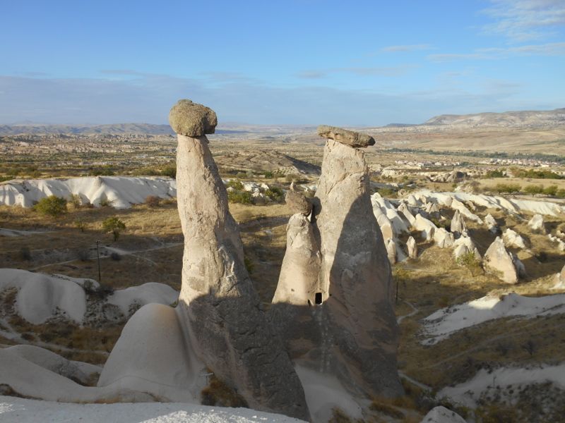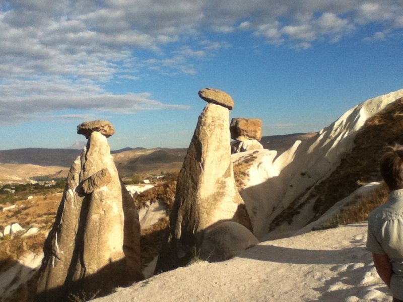 I was very excited to finally reach Cappadocia. This is the area of Turkey I was most interested in visiting. Once I read about the underground cities, I knew I had to see them. We were finally in the area! Cappadocia also has some very unique, naturally occurring rock formations. These are often called "Fairy Chimneys"[*].