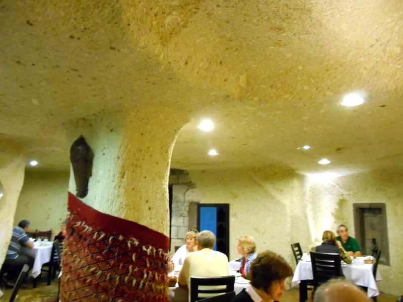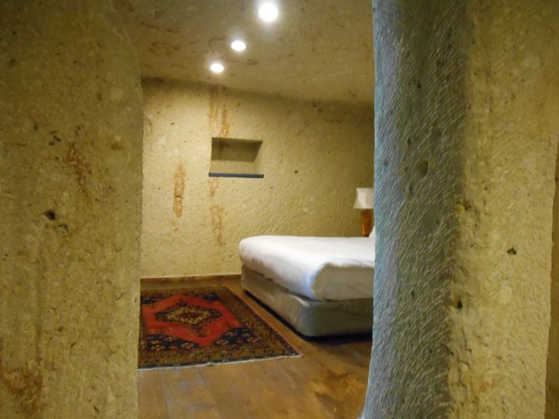 Another treat: we got to stay in a cave hotel[*]. I had read about them and was really pleased when I found out we would be staying in one. Calling it a "cave hotel" makes it sound a bit primitive, but it wasn't at all. The hotel isn't entirely in a cave, but the rooms really are dug into the hillside.
