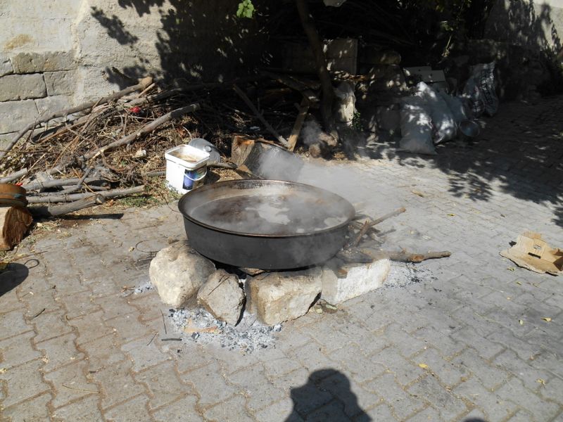 Another woman was cooking part of her grape harvest to make grape molasses.
