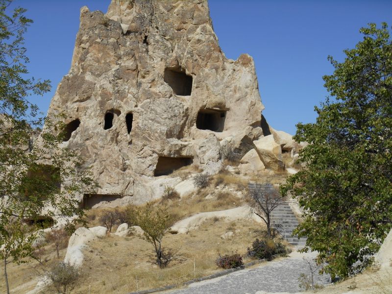 There was so much to see and do in Cappadocia that we were kept busy all day both days. After our walk around Mustafapaşa, we boarded our bus and headed off to the Göreme Open Air Museum[*][*]. This was a very unusual place, and that's saying a lot in Cappadocia! Like much of the area, it was full of unusual rock formations, but that was the least of it. Carved into these rocks were dozens of small churches.