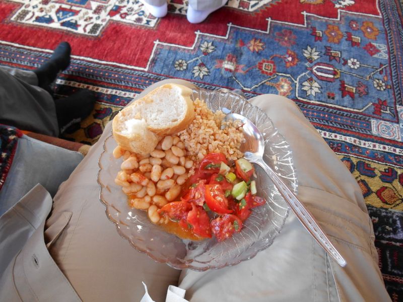 And finally, it was time for lunch. We were invited to the home of a local woman for a traditional Cappadocian lunch. Yum - white beans cooked in an outdoor tandoori oven, fresh tomato salad, seasoned rice, and bread. Delicious.