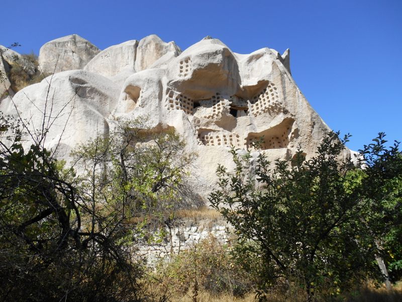 These are some of the "pigeon condos" which help give the valley its name. "Pigeon condos? Did pigeons build these?" No, the "condos" are manmade. It turns out pigeon droppings make very good fertilizer. These were carved out so that farmers could collect the droppings more easily.