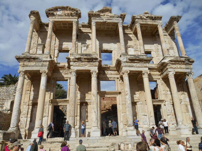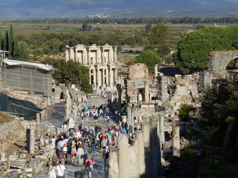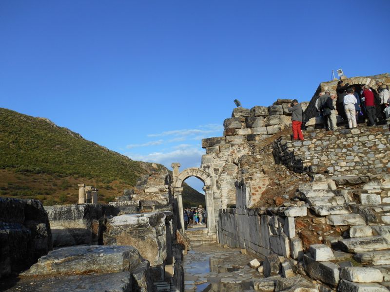 Ephesus[*] is the most thoroughly excavated and also the most crowded of the ancient cities we visited on the tour. It is both the most famous and the easiest to visit. (It is a regular excursion for tour ships that visit Turkey, reachable from both ports of Kuşadası and Izmir.