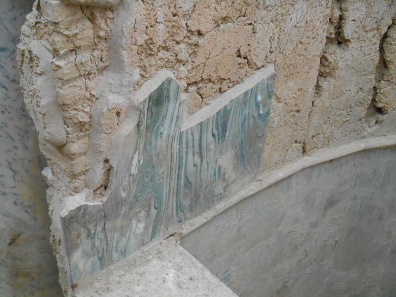 The picture on the right shows the thin layer of marble which originally covered the walls. They are trying to recreate some of these wall coverings from the fragments of marble uncovered at the site. They jokingly refer to this as "the world's largest jigsaw puzzle."