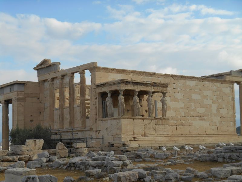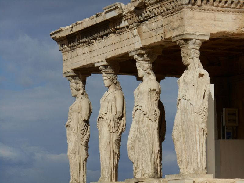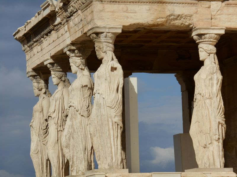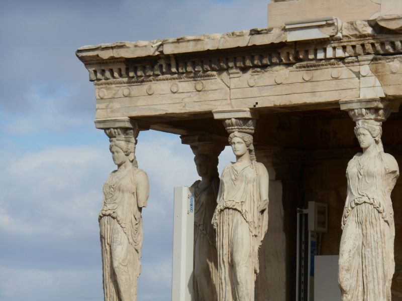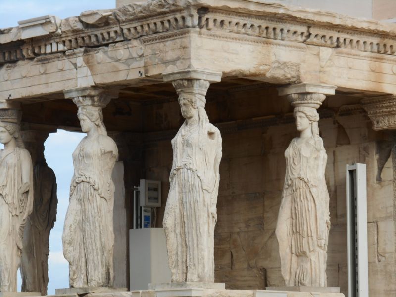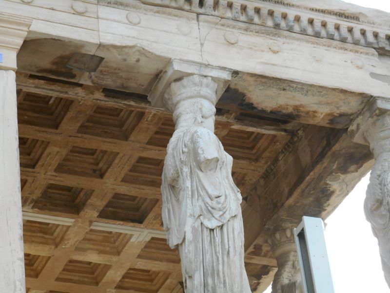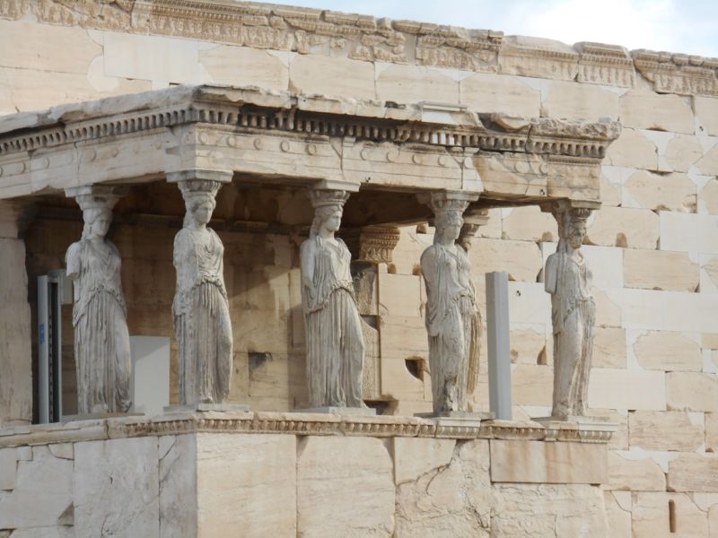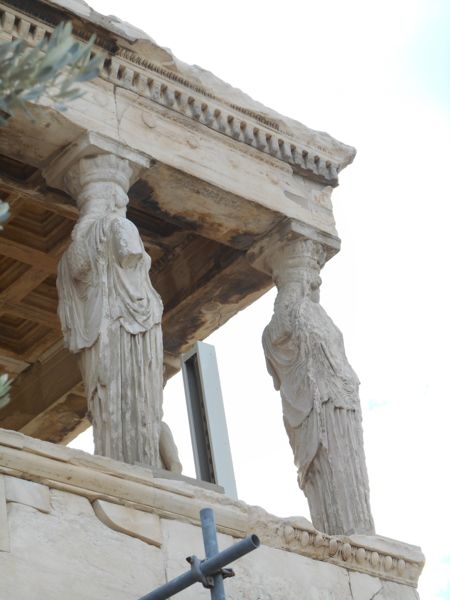 These Caryatids are copies. Four of the originals are in the Acropolis Museum. (The other two are in museums in London and Paris.) However, they weren't on display. They were undergoing restoration.
