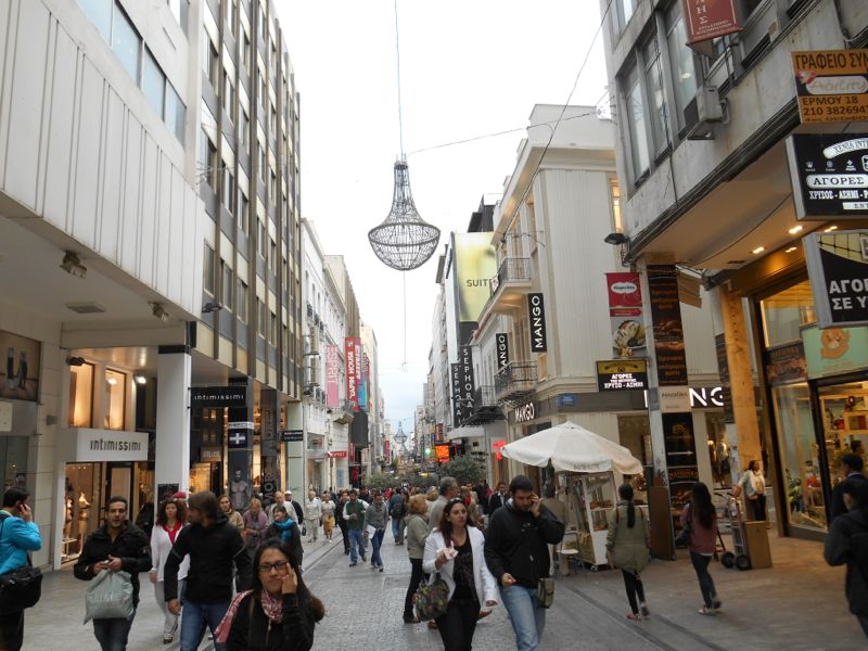 This is a typical view of one of the main shopping areas of Athens, full of stylish shops and restaurants.