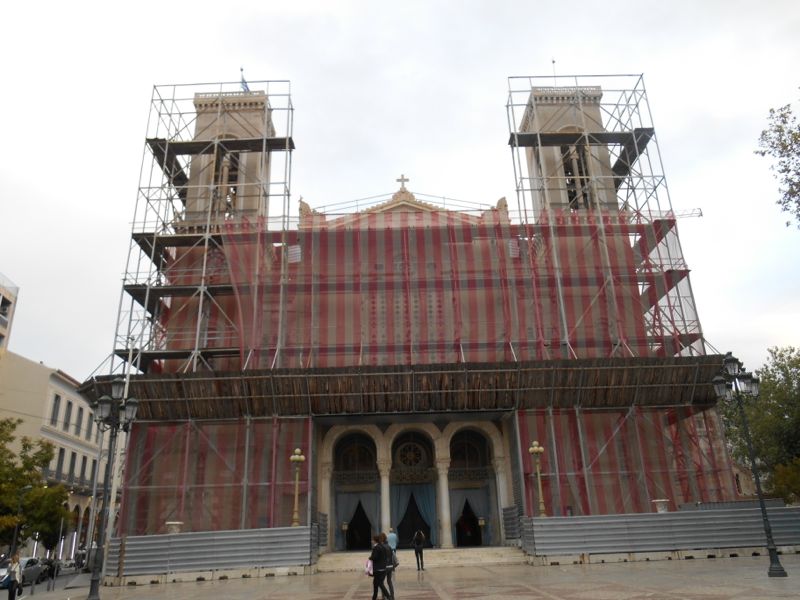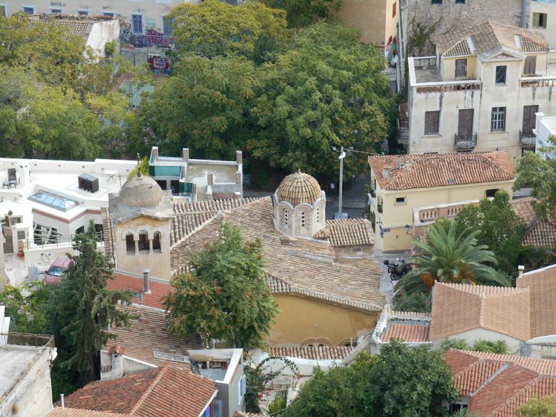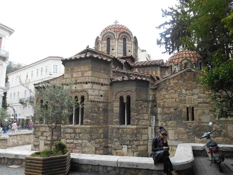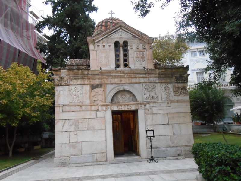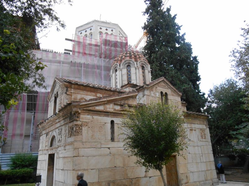Then, right in the middle of an intersection (of two pedestrian streets) is the Kapnikarea Church[*].