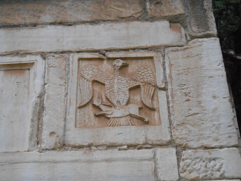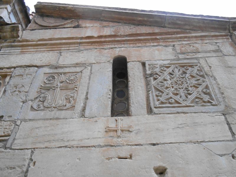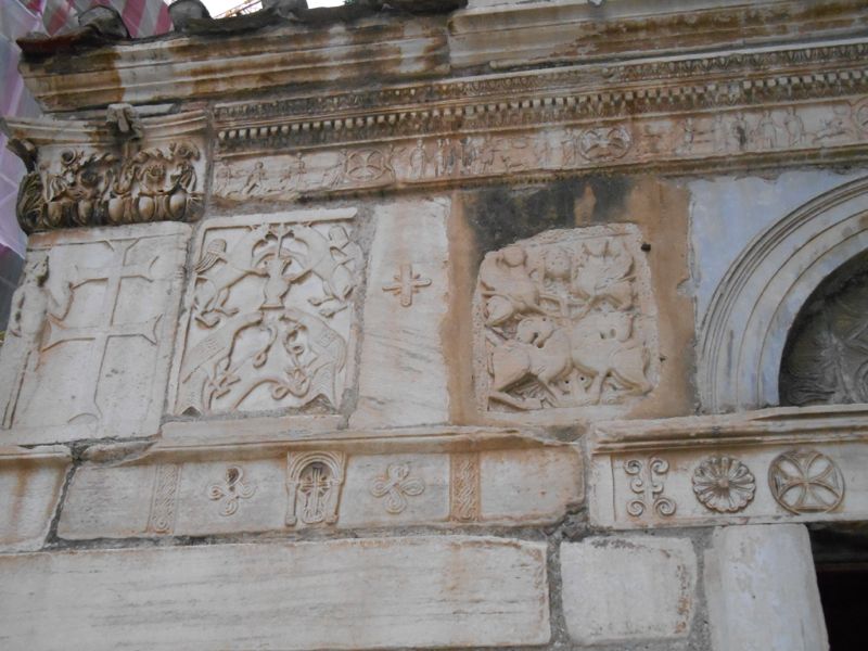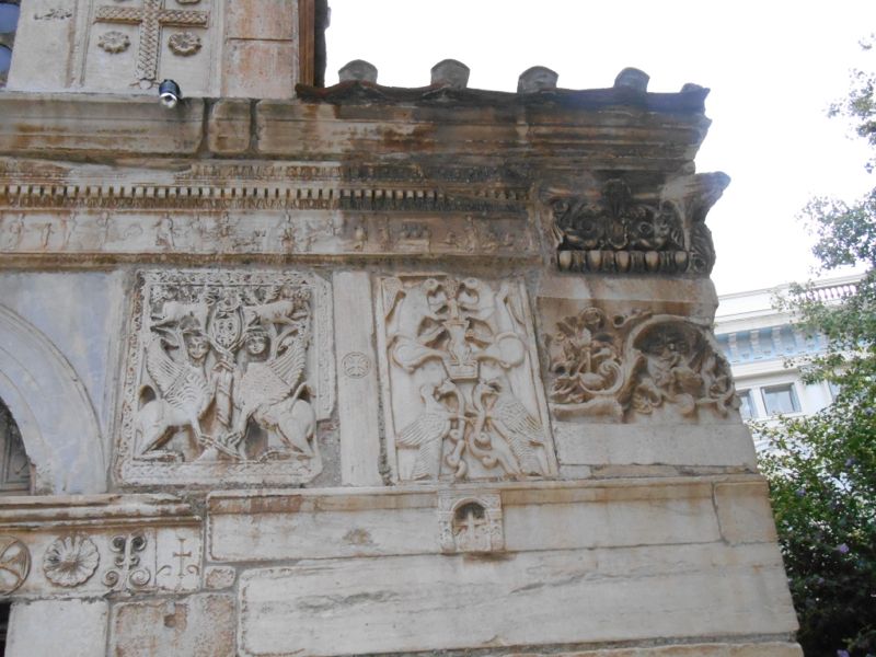 Right outside the cathedral was a small church, Agios Eleftherios[*]. It is very interesting to look at. It has several different carvings around the outside, no two alike. There was a service going on, so I didn't get any interior pictures