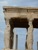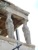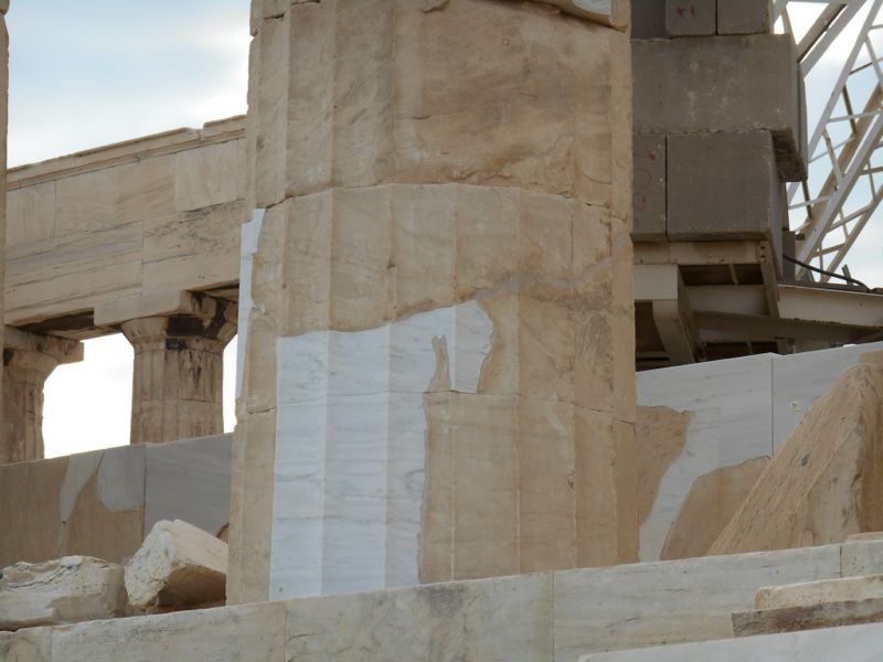 is undergoing restoration. In the close-up, you can see that some of the marble is white.  This is new marble and it will eventually turn the same color as the original pieces.