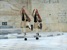 These are replicas of part of the frieze that decorated the Parthenon. (Click on them to get a better idea of where they are located.) The originals are in the British Museum, where they are part of the "Elgin Marbles"[*]. A more complete set of replicas is in the Acropolis Museum.