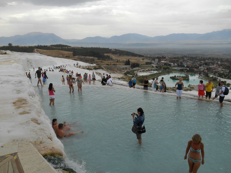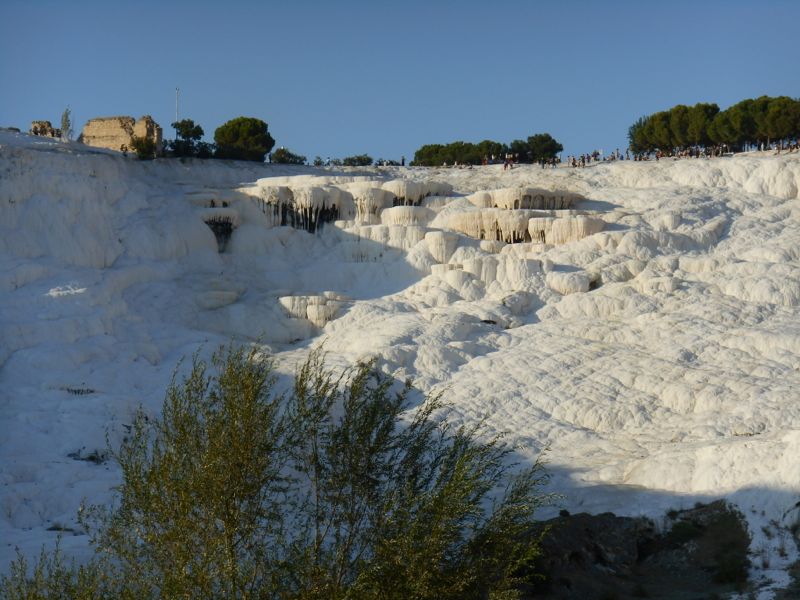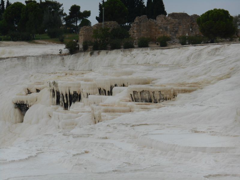 Pamukkale[*] (or "Cotton Castle") has been a resort for centuries. These thermal springs reminded me of the travertine formations of the Mammoth Hot Springs area of Yellowstone, but the water isn't nearly as hot. Our hotel had a thermal pool that was fed from the springs and I had a great soak before dinner.
