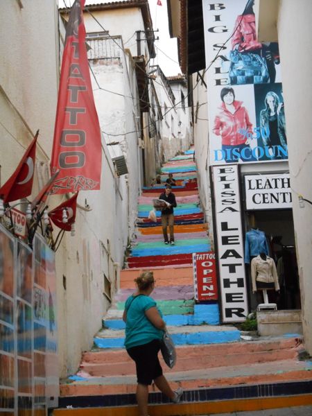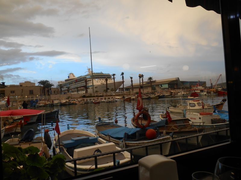 We arrived in Kuşadası just in time for a short walk around town. It is a cruise ship port. The ships had not yet left for their evening's travel, but passengers were already on board so we didn't run into throngs of tourists. It's main purpose seems to as be a port where ships can wait while the passengers take day trips to Ephesus and then buy souvenirs of their trip.