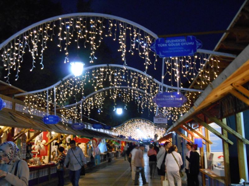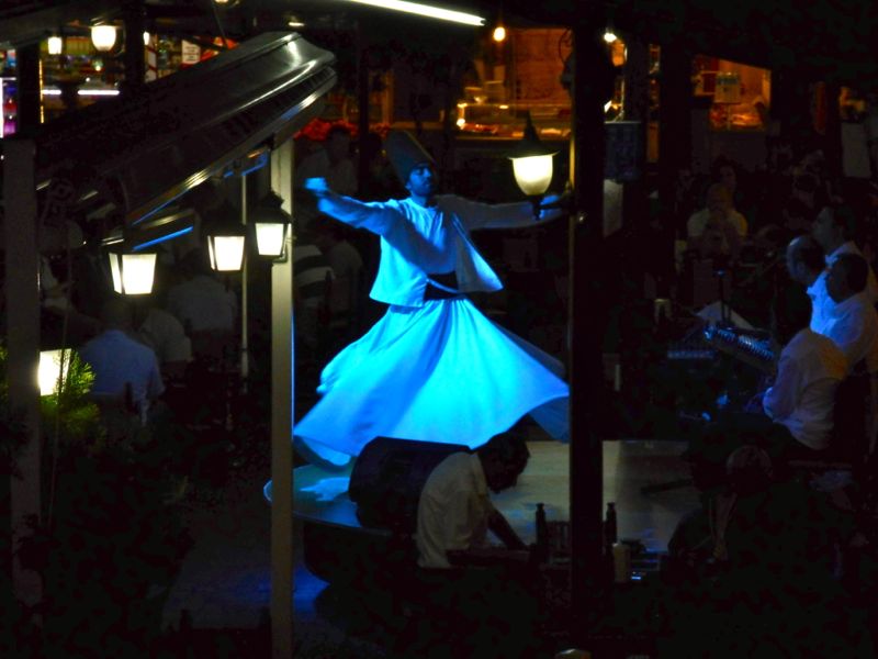 The first two evenings as I was out walking, I heard music in the distance. All I could tell was that it was not any kind of music I was familiar with. I thought to myself: maybe I can see a Turkish dance performance. I followed by ears and there it was - a Korean dance performance! There was some kind of cultural exchange festival going on. Finally, on the third evening (the last of the festival), I found a Turkish performance. (And one more picture at the end to show someone doing a Dervish dance for the tourists - not a real Dervish Ceremony, I had to wait until Cappadocia for that.)